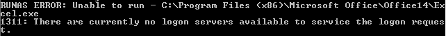 runas /netonly /user:clientdomain\accountname “C:\Program Files (x86)\Microsoft Office\Office14\Excel.exe”
